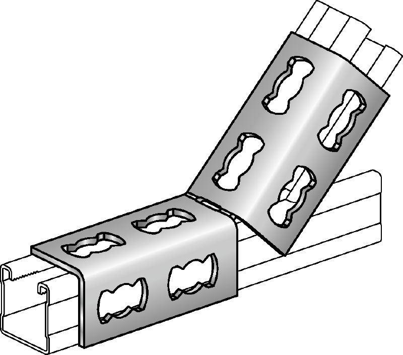 Hot-dip galvanised (HDG) 45- or 135-degree angle for connecting multiple MQ strut channels