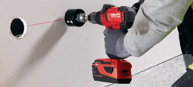 - Cutting holes for MEP installations in plasterboard, wood, plastic, steel and aluminium